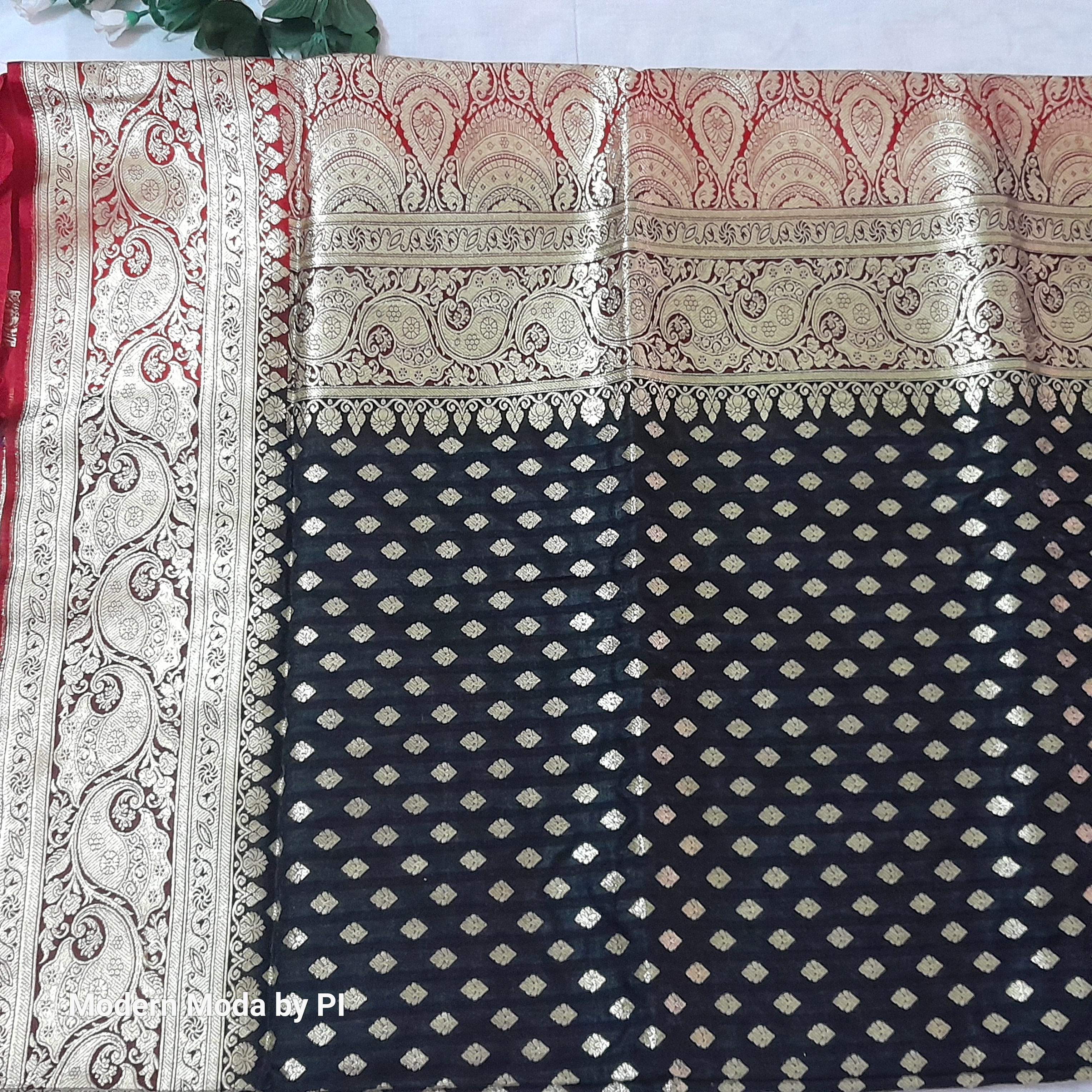 Banarasi sarees are renowned for their luxurious fabric, intricate zari work, and rich history, making them a symbol of elegance and tradition in Indian culture. Originating from Varanasi (also known as Banaras), these sarees are known for their opulent designs, often featuring Mughal-inspired patterns and motifs.