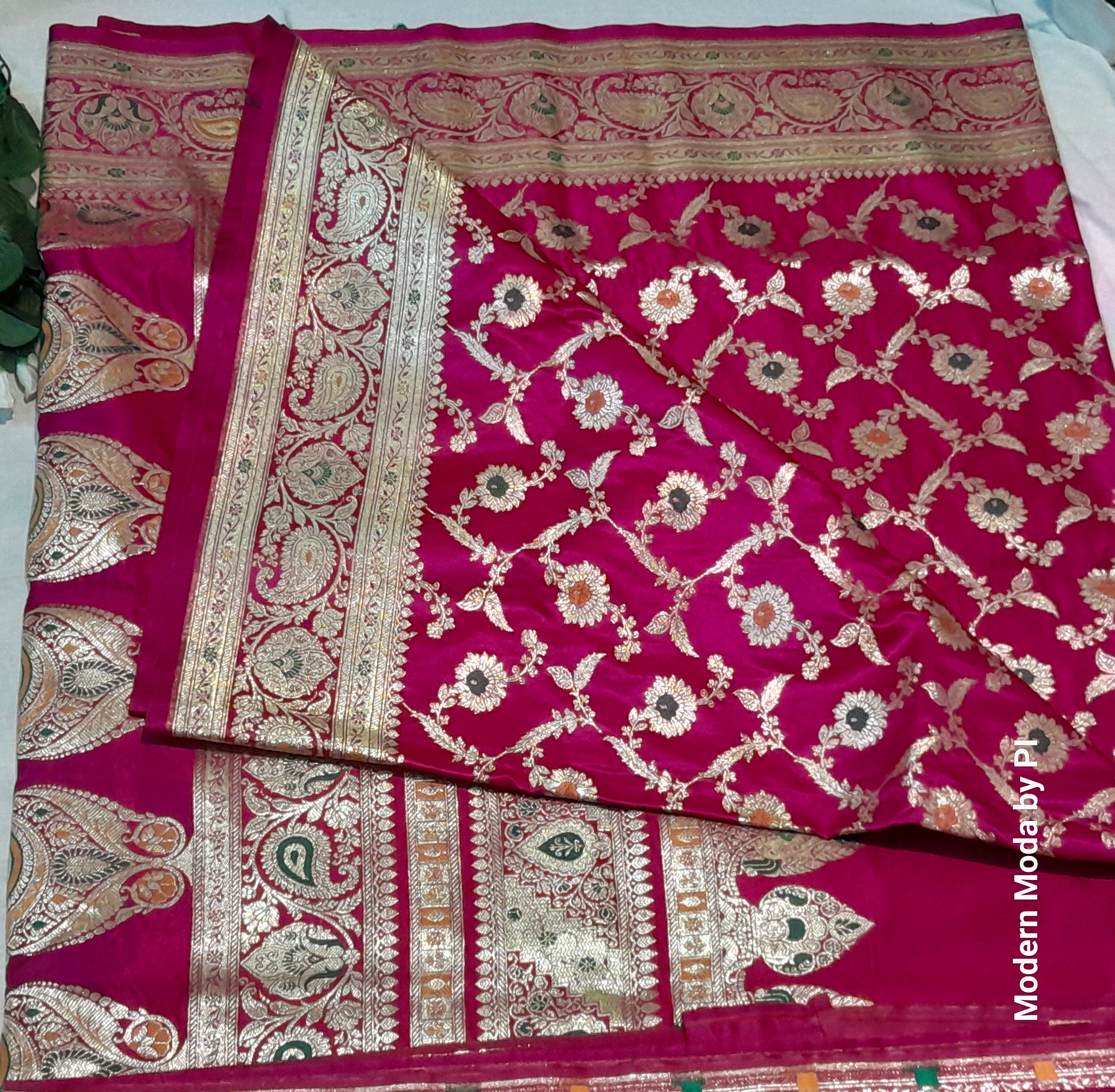 Banaras), these sarees are known for their opulent designs, often featuring Mughal-inspired patterns