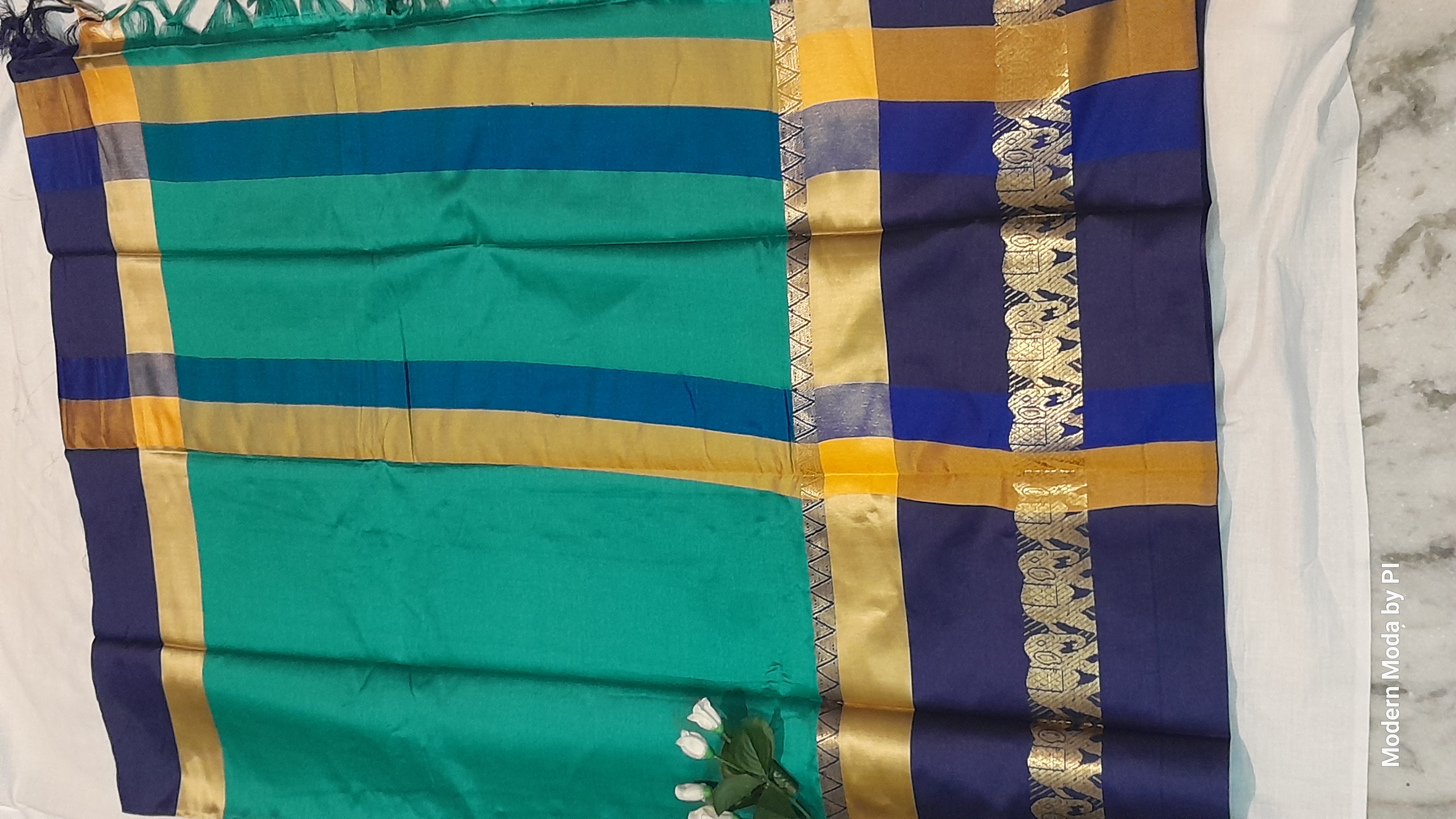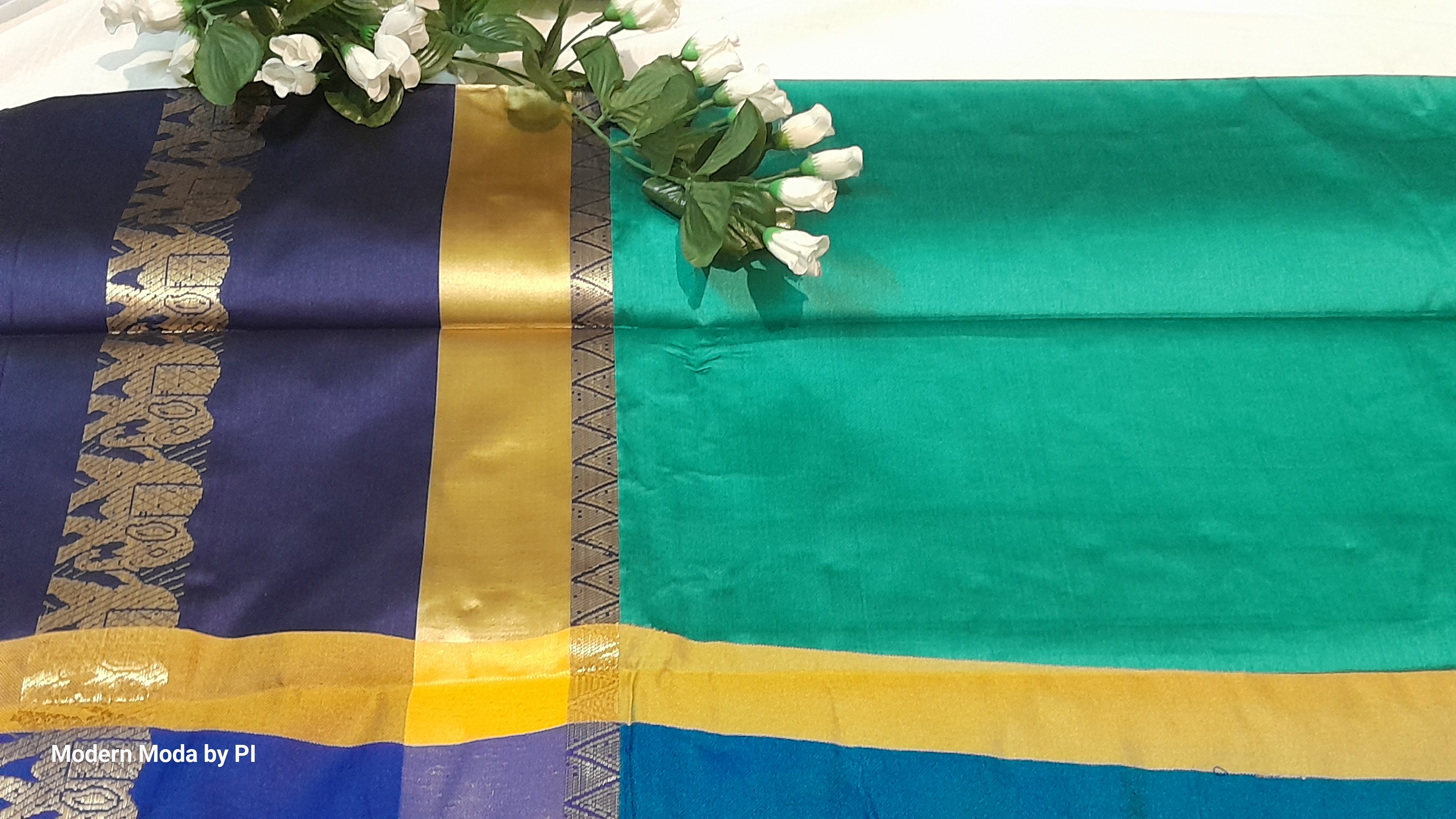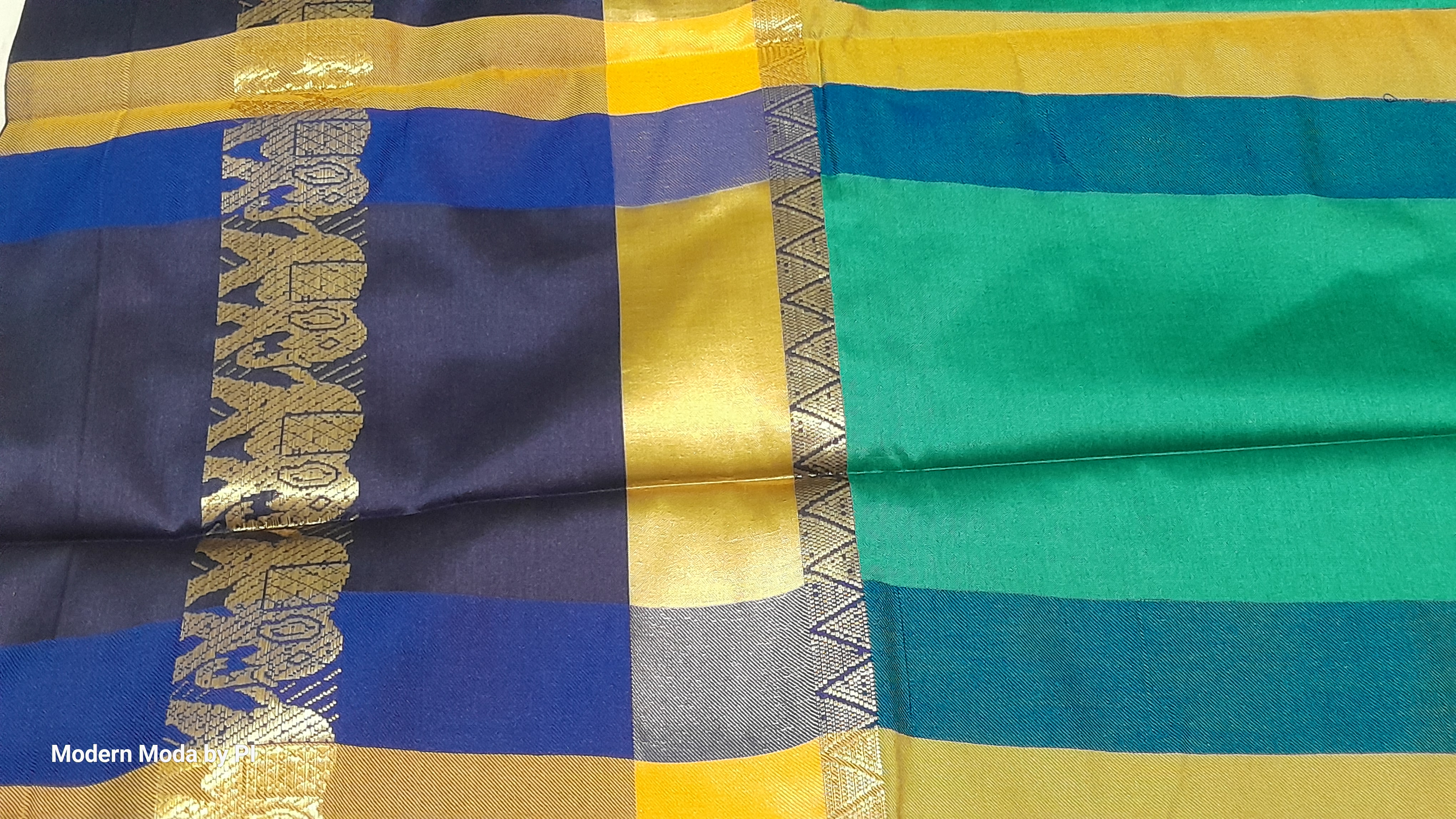 Design : Navy Blue and Golden Border with Golden Zari motif