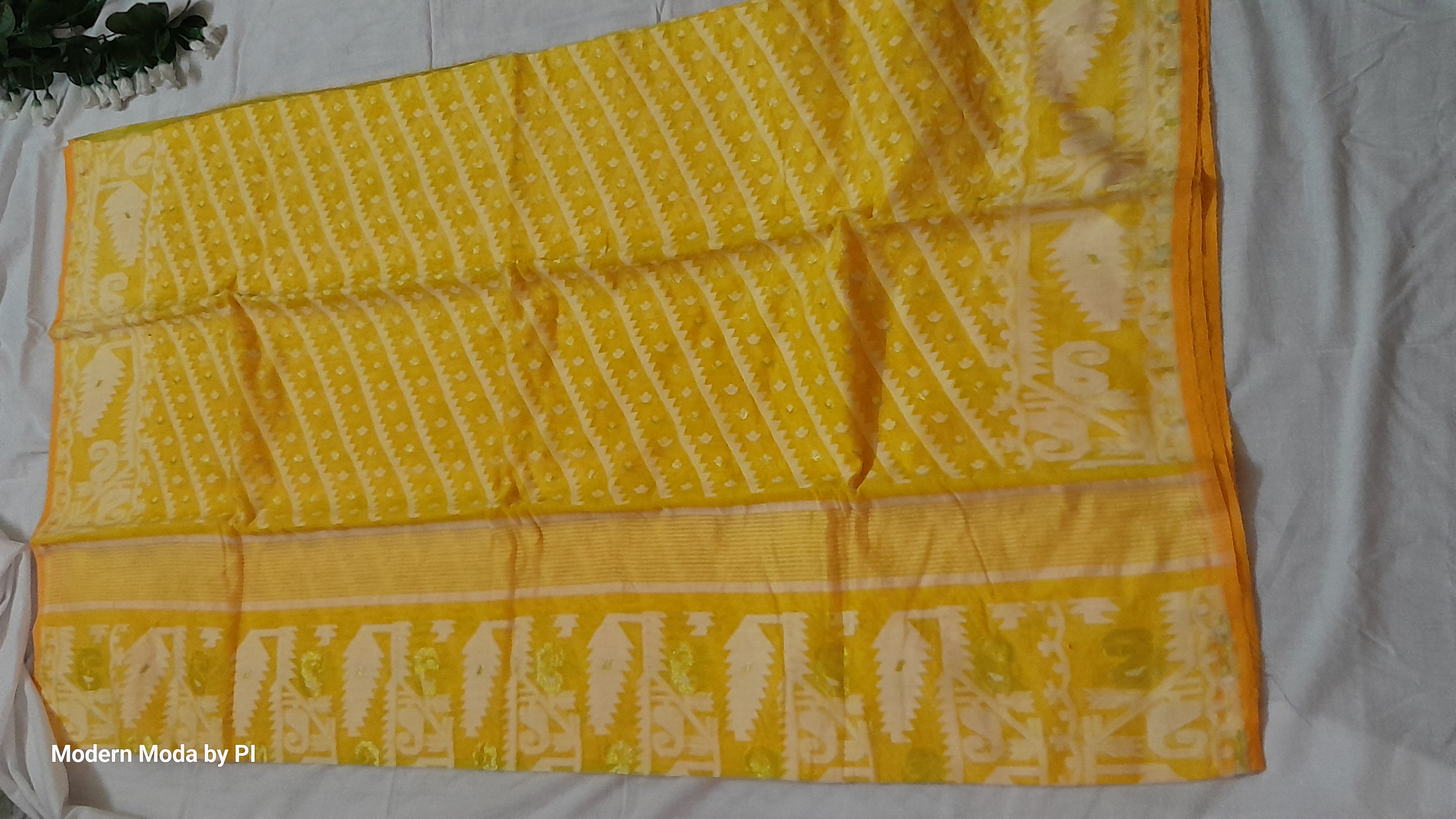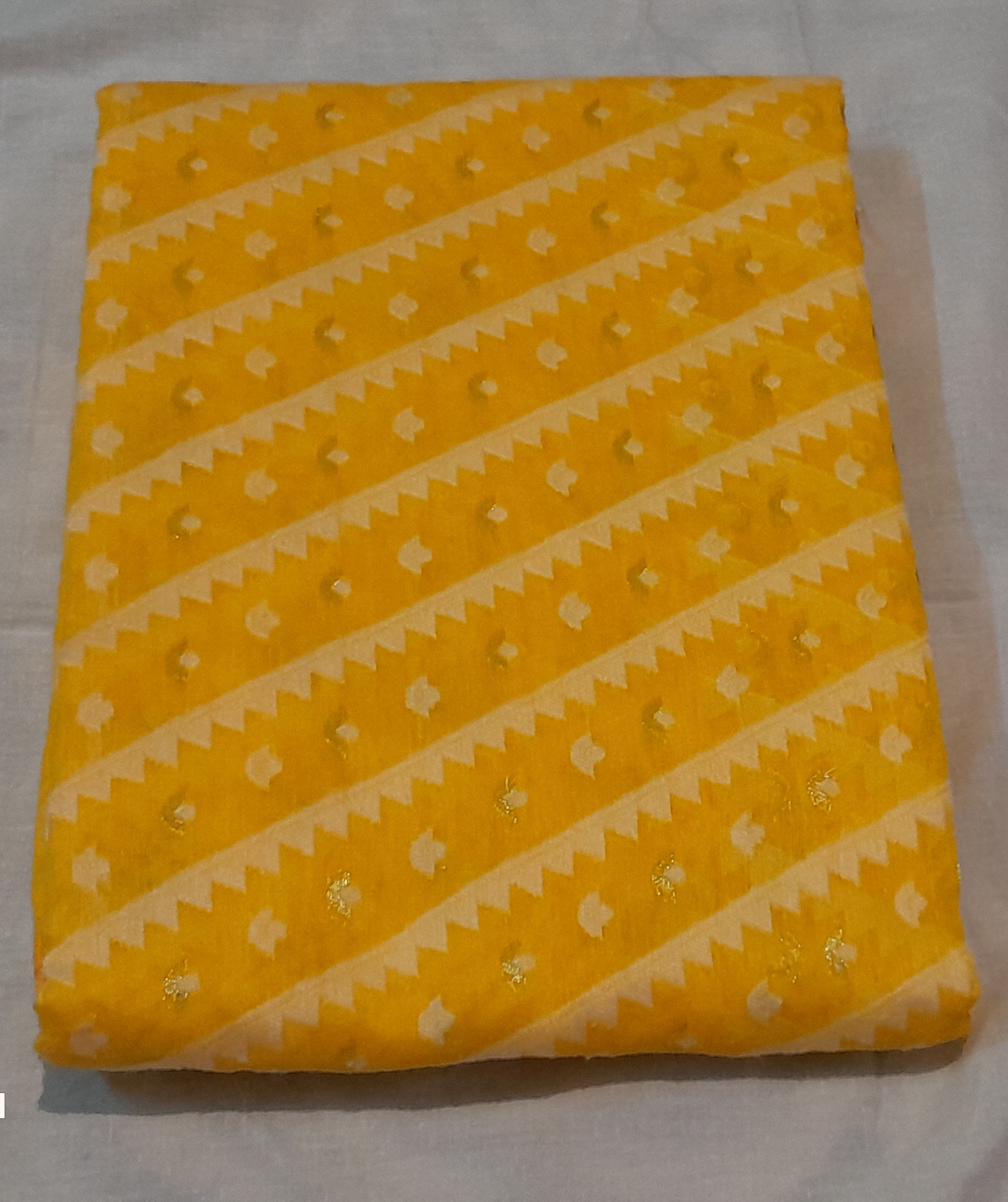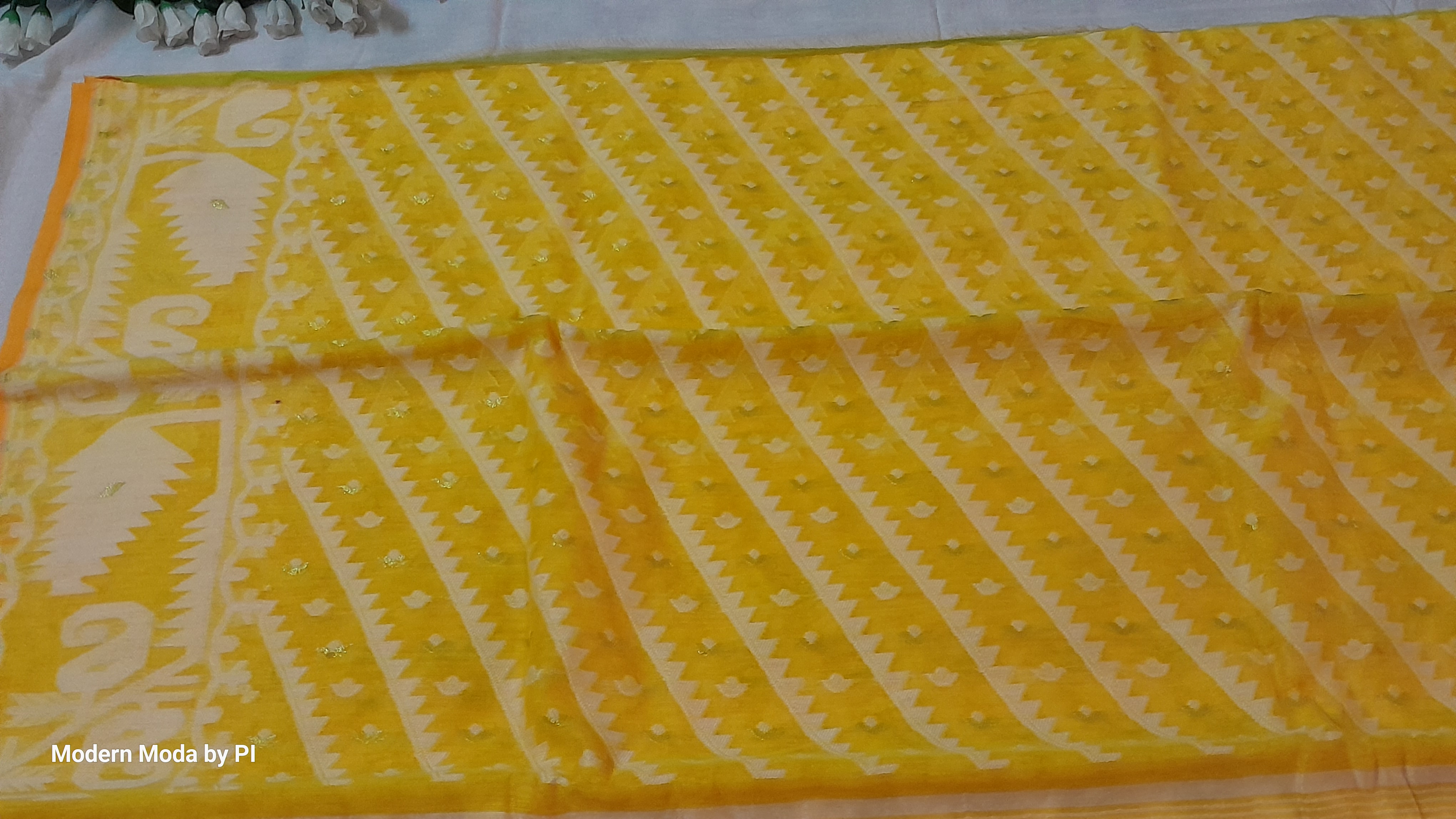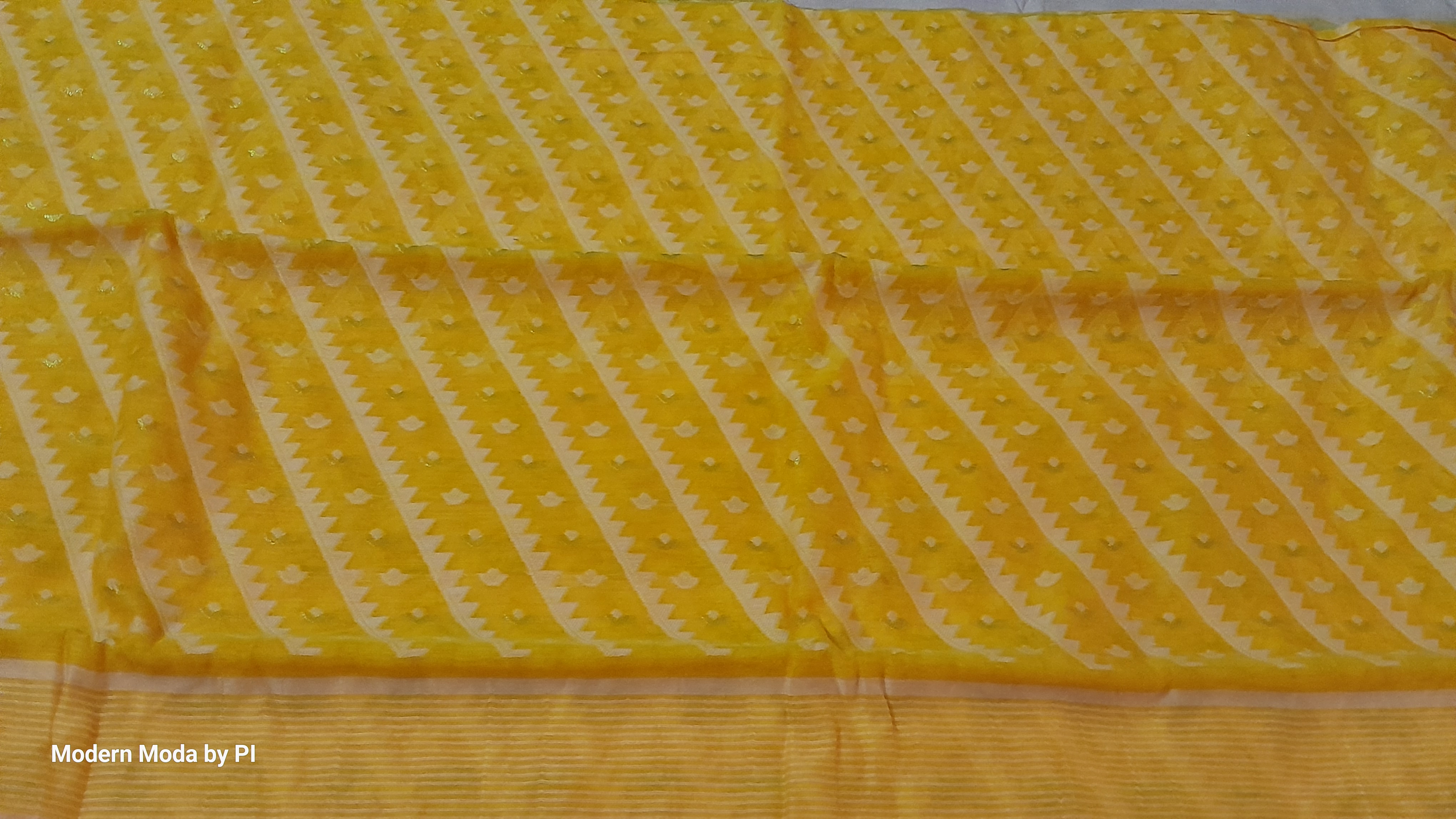 Design : Beautiful motif with White and Golden Zari Thread